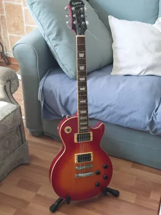 Vendo guitarra Epiphone Les Paul Standard fabricada en Corea en el año 2002. Está completamente nueva y en un estado impecable. En realidad, de Epiphone solo conserva el cuerpo, ya que todo lo demás ha sido mejorado: pastillas, potenciómetros, clavijas y el resto de la electrónica son componentes originales Gibson, lo que le da un sonido y una calidad muy superiores. No acepto cambios.