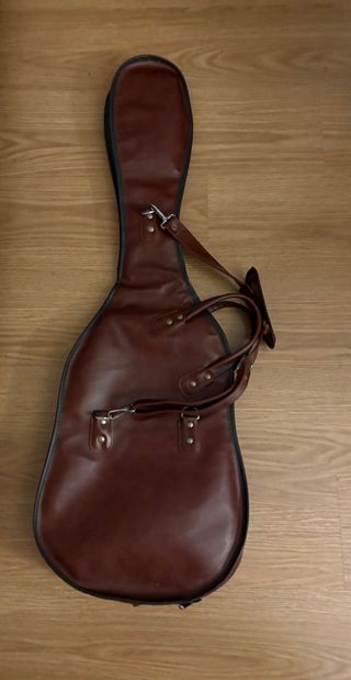 Fabricado en cuero falso marrón. Apto para stratocaster, telecaster, Les Paul Tiene un roto en la parte de correa pero 100% funcional