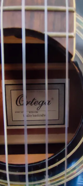 Guitarra electroacústica Ortega. Es una guitarra versátil con cuerdas de Nylon. Le he cambiado el micrófono que trae de fábrica por uno de mejor calidad. Incluye funda original de la guitarra de muy buena calidad, super acolchado. La funda tiene estropeada la cremallera del bolsillo. Lo demas perfecto