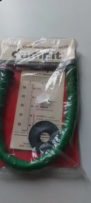 Protege tu instrumento musical con este humidificador Dampit. Diseñado para mantener la humedad adecuada y prevenir daños. - Ideal para violín, viola, cello, bajo, guitarra, mandolina y timbales. - Incluye instrucciones de uso y niveles de seguridad. - Fabricado por Dampits, Inc. en Nueva York.
