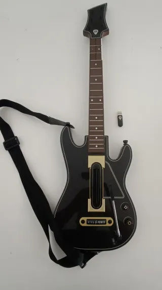 Controlador de guitarra para Guitar Hero. - Diseño en color negro. - Incluye correa. - Dongle USB.