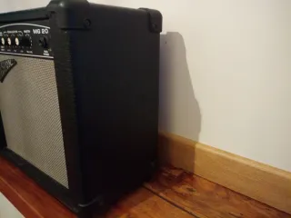 🔊🎸Amplificador de guitarra VISION MG 20, compacto y potente para su tamaño, versátil,lo mismo te vale para ensayar en casa que para un local de ensayo, pesa poco para llevarlo de aquí para ya Recién revisado, potenciómetros limpitos no chascarrea ninguno. Made in Korea -40w , (20w RMS) - Controles de canal, ganancia y volumen. - 2 Canales, limpio/ distorsion - Ecualización de agudos, medios y graves. - Entrada para auriculares. Preferible envío por wallapop mediante inpost, así te lo envío de un día para otro.