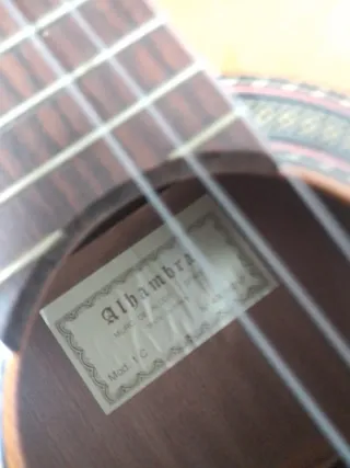 Guitarra clásica Alhambra modelo 2C Cedro con funda acolchada. - Fabricada en España. - Número de serie: 41047845. - Número de etiqueta: 17360.Tiene las dos marquitas que se ven en la última foto debajo de la cejilla,de cuando se me soltaron esas cuerdas y la fina marca del barniz que se ve en la pen última foto.Esto no impide que la guitarra suene de maravilla.