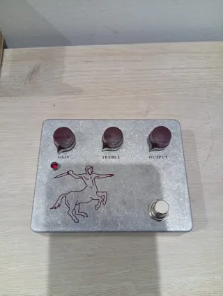 Efector de guitarra KLON Centaur stompbox pedal de guitarra - Acabado metálico plateado. - Ilustración de centauro en color burdeos. - Tres potenciómetros: Gain, Treble, Output. - Indicador LED rojo. - Botón de footswitch.