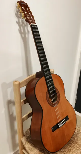 Se trata de una guitarra de artesania Valencia modelo cs 40. Para venderla he revisado los siguientes puntos: - Limpieza - Hidratación con aceite de limón del diapasón más limpieza y pulido de trastes - Clavijero a estrenar en dorado y nácar Adorno en puente y pala imitación nacar - Cuerdas nuevas D'adario -Ajuste de silleta y cejuela, muy comoda de tocar, ideal para principiantes. Se entrega con funda y se envía perfectamente embalada para su trasnporte.