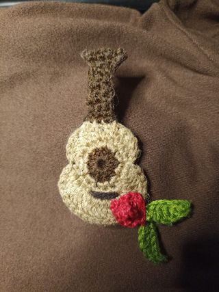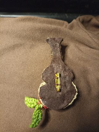 Este es un bonito broche hecho a mano con forma de guitarra flamenca y una rosa. Ideal para Feria de Abril - Diseño de guitarra flamenca. - Detalle de rosa roja. - Hojas verdes. - Hecho a mano.