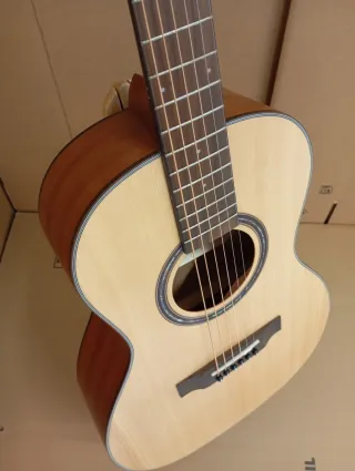 Guitarra acústica amplificada Egmond con previo OS1. Incluye efectos de reverb, chorus , delay y incluye un altavoz interno que autoamplifica la guitarra sin necesidad de amplificador externo , también admite bluetooth para tocar encima de bases. La Egmond AV-52 es una guitarra acústica de cuerpo parlour moderno, con las dimensiones de una acústica estándar y la estética vintage de las parlour clásicas. Incorpora tapa maciza de abeto, fondo y aros de caoba, diapasón y puente de palosanto, y clavijeros cromados sellados en aceite. Enviamos a toda España a través de Wallapop O transporte urgente