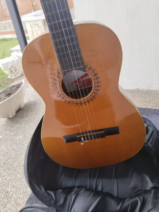 Guitarra clásica en buen estado, ideal para iniciarse o para quienes disfrutan de la música. - Incluye funda para su transporte y protección. - Cuerpo de madera con acabado natural.