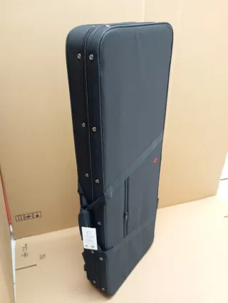Estuche para guitarra eléctrica fabricado en foam, ideal para proteger tu instrumento - Color negro. - Cierre con cremallera. - Bolsillo exterior - Asas de transporte. - Tirantes tipo mochila Estuches para guitarras eléctricas fabricados en poliéster negro, interior de terciopelo naranja y acolchado foam. Bolsillo, asas y mochila. Medidas: externas 104x38x11cm - internas 100x34x8cm. Peso: 1,85Kg.