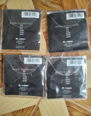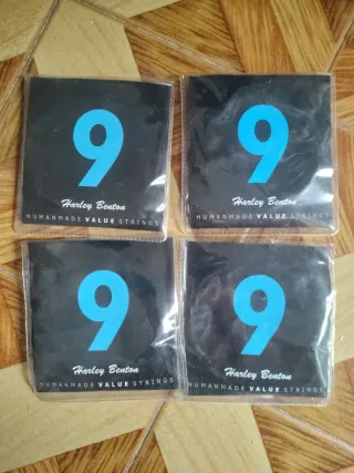 Pack de 4 juegos de cuerdas para guitarra Harley Benton. - Calibre 9. - Modelo HUMANMADE VALUE STRINGS.