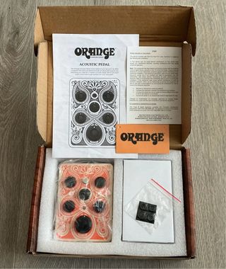 Preamplificador para guitarra acústica de la marca Orange. El Acoustic Pedal es un preamplificador compacto para tu instrumento acústico y tiene múltiples aplicaciones: para solucionar problemas de realimentación, para manejar complejas cadenas de efectos sin problemas, para dar riqueza y sonido a un instrumento pobre y apagado, o para conectarlo directamente a una PA. Conexiones: salida XLR Balanceada con calidad de estudio y Jack mono 1/4". Permite conectar directo a PA sin necesidad de una DI caja de inyección, o a un amplificador, por ejemplo. Selector de cambio de fase para evitar problemas de cancelación de fase.