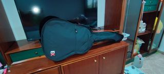 Guitarra acústica en muy buen estado con funda y cinta para colgar. Negociable