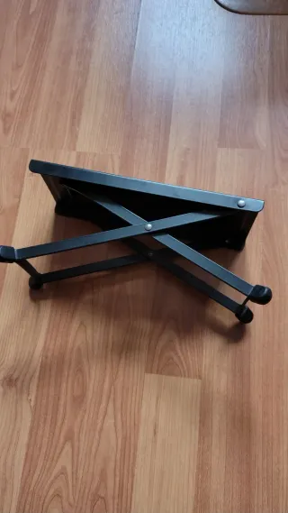 Accesorio para guitarristas que permite elevar el instrumento. - Estructura metálica negra. - Diseño plegable para fácil transporte. - Base antideslizante.