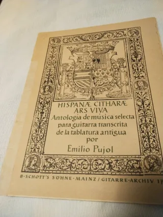 Antología de música selecta para guitarra transcrita de la tablatura antigua. - Compilación de Emilio Pujol. - Publicado por B. Schott's Söhne, Mainz.