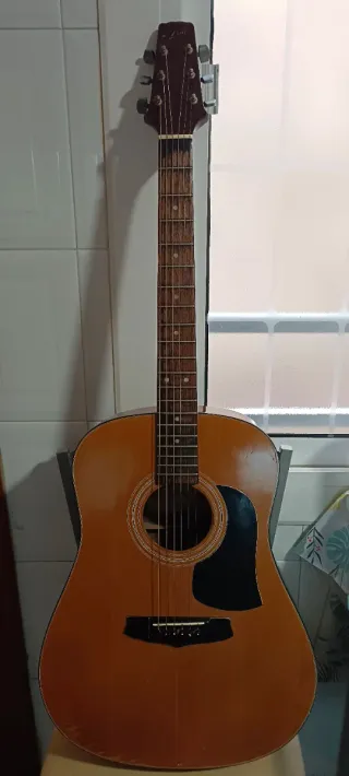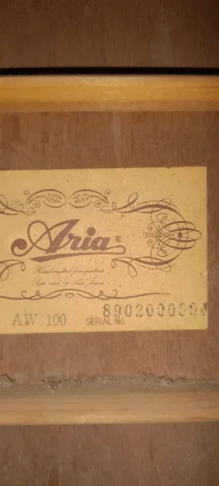 Guitarra acústica de la marca Japonesa Aria, Modelo AW 100 fabricada a fines de los 80's. Un instrumento clásico con un sonido distintivo. - Modelo: AW 100 - Origen: Japón-Corea - Año de fabricación: 1980 - Tipo: Acústica Tiene raspones y marcas porque estaba abandonada. Se restauró para acondicionarla. Le faltaría lustrarla y quedaría excelente.