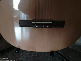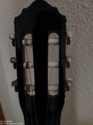 Guitarra española clásica en color negro. -Buen sonido. - Cuerdas cambiadas -Regalo el soporte expositor - Mástil de madera. - Clavijero metálico.