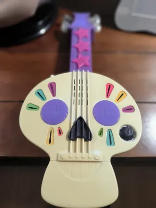 Guitarra de juguete con diseño inspirado en Vampirina. - Incluye luces y sonidos. - Colores vibrantes y detalles temáticos.