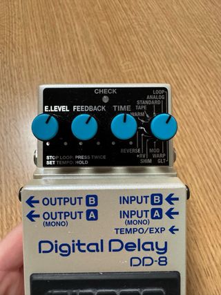 Pedal de efectos de guitarra Boss DD-8. Prácticamente nuevo , solo uso doméstico. - Controles de nivel, feedback y tiempo. - Modos de delay: Analog, Standard, Tape, Reverse, Mod, Warp, y Shim. - Entradas y salidas A/B para mayor flexibilidad.