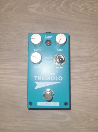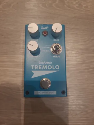 Pedal analógico de Tremolo, normal y armonico (similar univibe). Control de ganancia que no sube el volumen (se compensa). Si bajas la profundidad se puede usar como overdrive. Muy cuidado y de gran calidad.