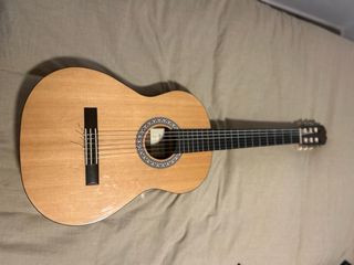 Guitarra clásica Admira con un acabado de madera natural. - Cuerpo de madera. - Mástil de madera. - Diapasón de madera. - Seis cuerdas recién cambiadas