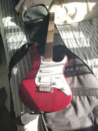 Guitarra eléctrica Yamaha Pacifica en color rojo brillante prácticamente sin uso y con plásticos sin quitar, precio muy poco negociable. Ideal para principiantes y músicos intermedios. - Cuerpo de aliso. - Mástil de arce. - Diapasón de palisandro. - Pastillas HSS (Humbucker-Single-Single). - Puente trémolo. - Incluye funda de transporte Gator Cases.