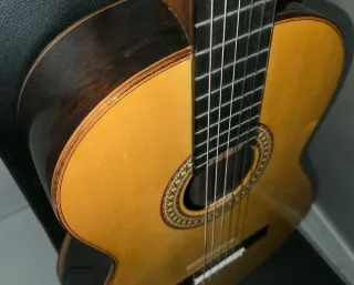 Guitarra clásica Alhambra 3C con un acabado natural y elegante. - Como nueva ni un solo rasguño - Sonido potentey limpio - Tapa de abeto alemán macizo. - Aros y fondo de sapelli. - Mástil de caoba. - Diapasón de palosanto. - El precio no es negociable debido a su estado y a su bien sonido