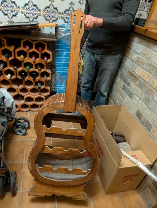 Botellero de madera con forma de guitarra