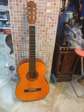 Guitarra clásica de madera con cuerdas de nylon. - Cuerpo de madera. - Mástil de madera. - Diapasón con trastes.