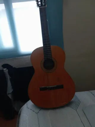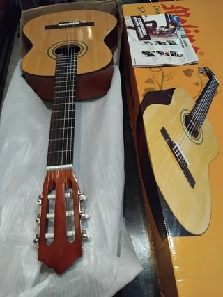 Guitarra clásica española con un acabado en madera natural. - Cuerpo de madera. - Mástil de madera. - Diapasón con trastes Se regala funda acolchada.