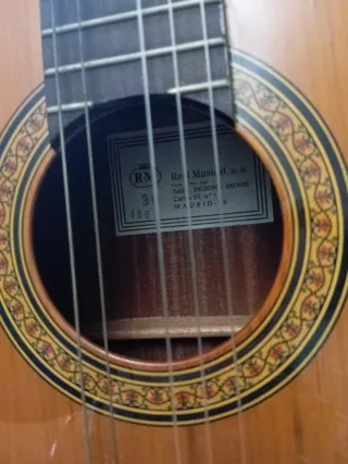 Guitarra clásica de la marca Real Musical, fabricada en 1983. Un instrumento con historia. - Cuerpo de madera. - Mástil de madera. - Diapasón de madera.