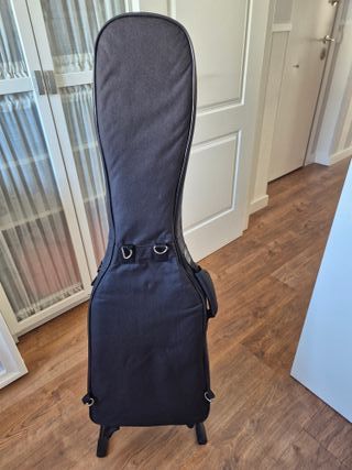 Funda para guitarra eléctrica Rockbag Starline. Las correas estan dentro de un bolsillo .Como nuevo - Color negro. - Compartimento frontal con cremallera. No cambios. Saludos - Cierre de cordón y velcro.