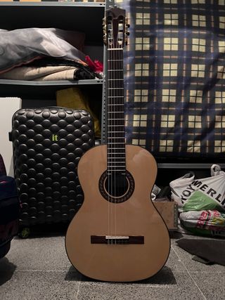 Guitarra española Luis Arostegui modelo Granados. Un instrumento clásico con un sonido cálido y resonante. - Tapa de abeto. - Aros y fondo de sapelly. - Mástil de caoba. - Diapasón de palosanto. - Año fabricación 1970 (aproximado) - Se puede ver y probar antes de comprar somos tienda. - No envío la guitarra a través de wallapop, porque no tienen servicio de paquetería frágil.