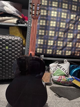 Guitarra española en buen estado, tiene una pequeña fisura sin importancia en la parte baja. Apenas se ha usado. Funda como nueva . Marca Calatayud y Gisbert