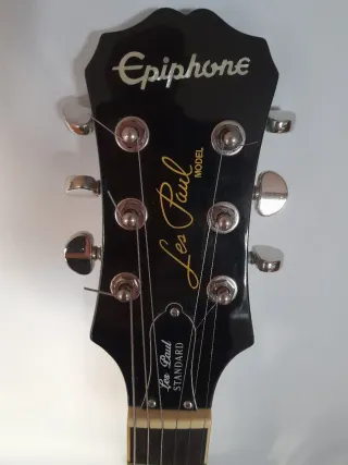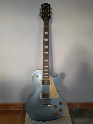 Guitarra eléctrica Epiphone Les Paul Standard en color azul metálico. Preciosa guitarra con muy poco uso, sin arañazos ni golpes, solo hay que cambiar la arandela del selector de pastillas( 10 € como mucho en amazon), casi siempre ha estado de adorno. - Marcas incrustadas de nácar en diapasón. - Cuerpo de caoba. - Mástil de arce. - Diapasón de palisandro. - Pastillas humbucker.