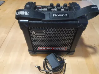 Amplificador portátil Roland Micro Cube. - Selectores de volumen, gain y tone. - Selector EFX con Chorus, Flanger, Phaser y Trémolo. - Selector Delay y Reverb. - Selector de tono guitarra: Acústica, JC Clean, Black Panel, Britney Combo,Clasicc Stack,R. Fier y micro. - Entrada jack guitarra eléctrica. - Entrada Aux. - Salida Rec o Phones. - Puede funcionar con el adaptador de corriente o con pilas ( Incluidas). - Color negro. - Incluye adaptador de corriente.