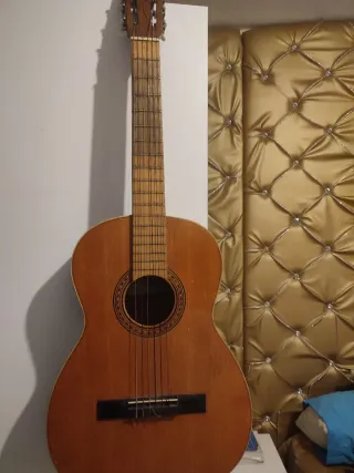 Guitarra clásica con un acabado de madera oscura y brillante. Ideal para músicos.sonido muy aflamencada ,tiene una pequeña grieta que casi no se puede apreciar porque es muy leve donde está el hueso justo ay , lo demás todo perfecto cuerdas ,trastes ,masti , todo listo para darle uso , tiene un sonido maravilloso ,muy claro y aflamencada sonido . Tiene la madera en su punto, peso muy leve y gran sonido...... - Cuerpo de madera. - Mástil de madera. - Clavijero metálico.
