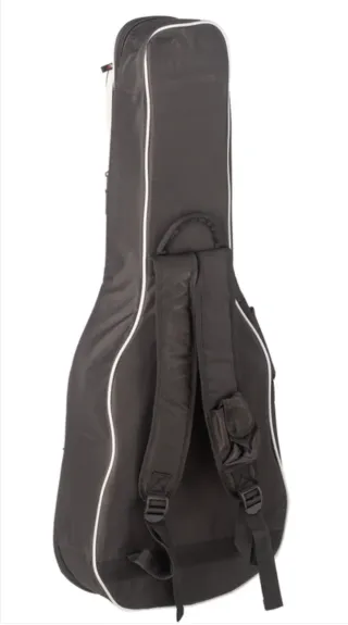 Funda Admira para guitarra clásica de 4/4. Correas regulables con protecciones para mochila. Anclajes de correas metálicos. Acolchado interior de 30mm. Asa acolchada de calidad para facilitar su transporte. Bolsillo para partituras. Refuerzo exterior en fondo. Color negro con borde blanco