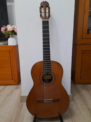 Guitarra española en buen estado, ideal para iniciarse o para músicos que buscan un instrumento de calidad. - Incluye funda para su transporte y protección. - Sonido cálido y equilibrado.