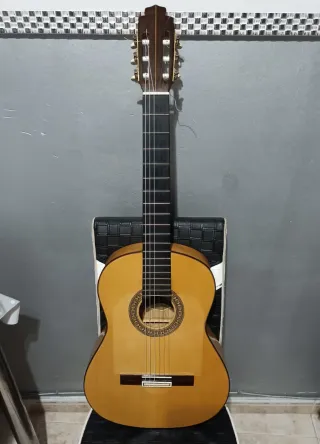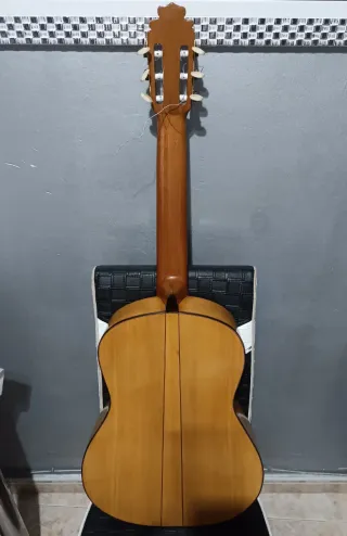 Guitarra flamenca de ciprés macizo, elaborada artesanalmente por algún constructor de Granada pero no sé sabe quién... - Tapa de abeto alemán maciza. - Aros y fondo de ciprés macizo. - Mástil de cedro. - Diapasón de ébano. - Huesos ajustados por Luthier, acción muy bajita, cómoda de tocar. - Clavijero dorado.