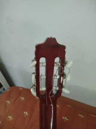 Guitarra española clásica con cuerdas de nylon. - Cuerpo de madera. - Mástil de madera. - Incluye juego de cuerdas nuevo.