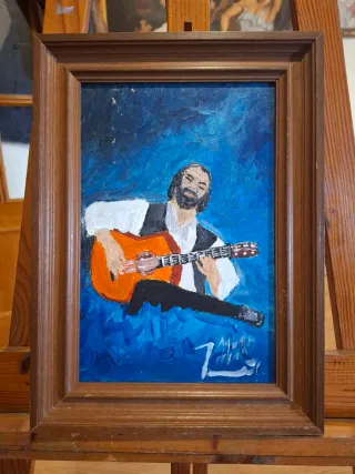 Pintura original de un guitarrista tocando la guitarra. - Técnica: Óleo sobre tabla. - Medidas: 40x30 cm.