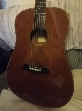 Guitarra acústica ARIA AW70 Tapa maciza de caoba , Cejilla metálica , bien ajustada , tiene muy buen sonido volumen