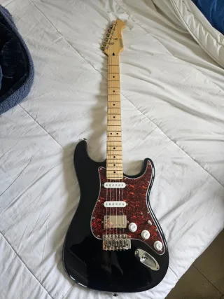 Guitarra eléctrica Donner DST 152B color negro en perfecto estado. Cuenta con pastillas single coils y una humbucker para todo tipo de estilos y sonidos. Cuerdas recién cambiadas. Incluyo funda de la marca por 10 euros