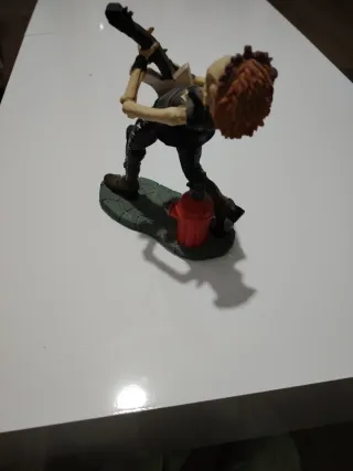 Figura decorativa de una calavera con estilo rockero tocando la guitarra. - Diseño detallado de calavera. - Viste chaleco y pantalones. - Incluye guitarra eléctrica. - Base decorativa.