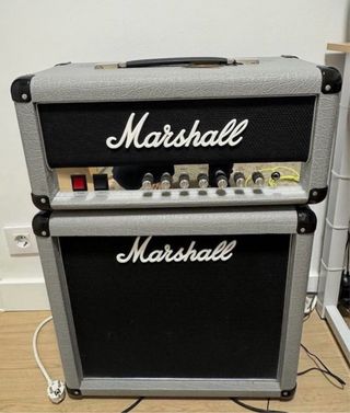 Marshall 2525H Mini Silver Jubilee -Completamente a válvulas -20W -3 canales -3 válvulas ECC83 en el preamplificador -2 válvulas EL34 en el amplificador de potencia -1 entrada -Controles: Presencia, Graves, Medios, Agudos, master de salida, master principal y ganancia de entrada -Conectores de altavoz: 1x 16 Ohmios, 1x 8 Ohmios (2x 16 Ohmios), 1x 4 Ohmios (2x 8 Ohmios) -Salida DI -Bucle de efectos -Dimensiones: 510 x 232 x 220mm -Peso: 10kg En perfecto estado, sin usar prácticamente, con la etiqueta, entrego pedal incluido, hago envíos, precio ´´algo negociale´´, NO TENGO PRISA POR VENDER, ABSTENERSE OFERTAS ABSURDAS.