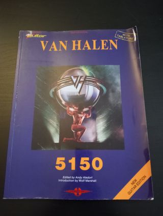 Van Halen – 5150 | Partituras + tablaturas Libro oficial de partituras y tablaturas del álbum 5150 de Van Halen. Incluye notación musical estándar y tablatura para guitarra. Estado: bueno en general; páginas interiores en buen estado. Portada: con desgaste visible por el uso y un borde esquinado (solo estético). Ideal para guitarristas, estudio personal o coleccionistas. 💡 Edición en papel, difícil de encontrar actualmente.