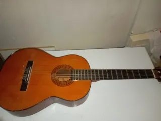 Guitarra clásica española de los años 60-70 en buen estado. Ideal para principiantes o coleccionistas. - Tapa de madera. - Diapasón de madera. - Clavijas clásicas. - Acabado brillante.