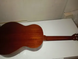 Guitarra clásica Triana en muy buen estado. - Cuerpo de madera con acabado brillante. - Mástil de madera oscura. - Seis cuerdas metálicas. - Clavijero dorado. Usada muy poco, en muy buen estado y bien conservada, tiene un pequeño golpecito en la parte de atras - abajo, se puede ver en la foto.