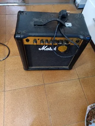 Amplificador de guitarra Marshall MG15FX. - Color negro. - Controles de volumen, ganancia y ecualización. - Entrada de auriculares. - Salida de línea.