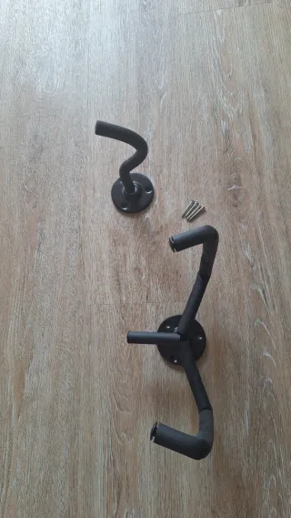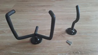Se vende soporte para colgar guitarra en la pared. Incluye sus tornillos. - Material: Metal con recubrimiento protector. - Diseño: Curvado para adaptarse a diferentes tipos de guitarra, española o eléctrica. - Base: Redonda con agujeros para fijación.